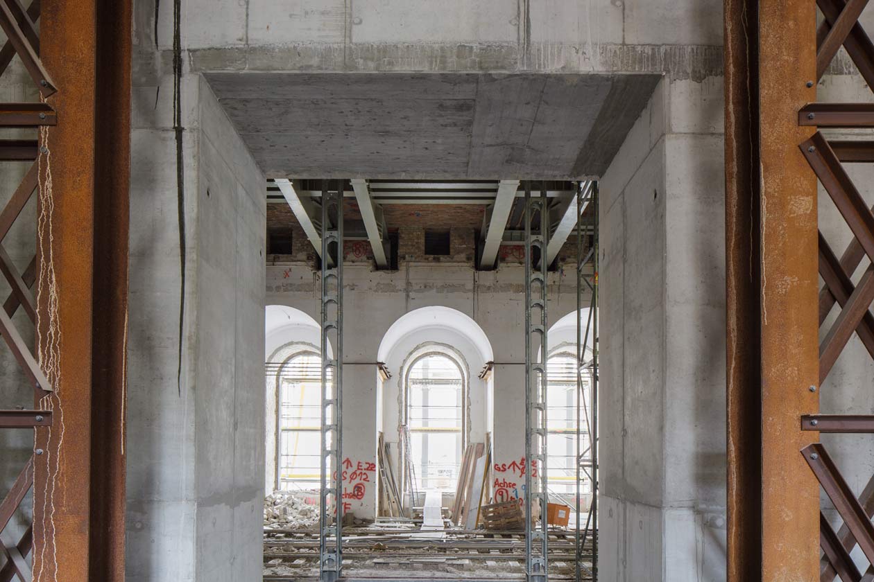 Im Nordflügel wurde eine neue tragende Wand errichtet: Durchbrüche auf der Hauptausstellungsebene eröffnen neue Perspektiven. © BBR / Peter Thieme